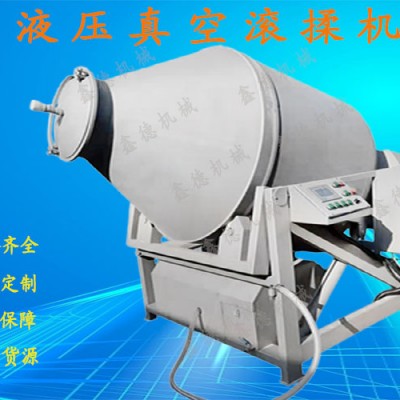 液压滚揉机是用于肉类制品的腌制和原料在真空状态下混合的专用设备,通过真空作用可以将块状肉的纤维组织拉张疏松,使常压腌制变为负压腌制,通过转动摔打,使静态腌制为动态腌制,在恒定的温度条件下,使自然腌制变为强化腌制,提高了工作效率。
